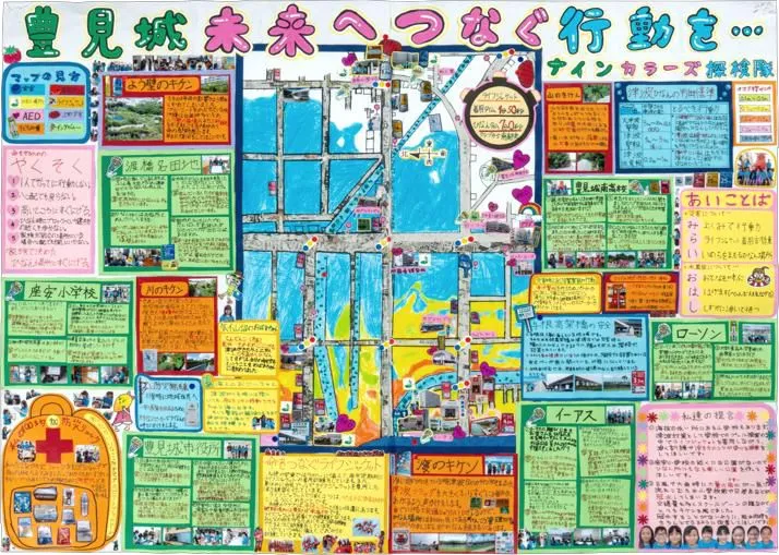 - 大きな模造紙に手描き&写真貼付の作品が多いです。タブレットでつくるデジタルマップもありです。ただ、その場合コンクールではデジタルマップ特別賞という選考枠になります。